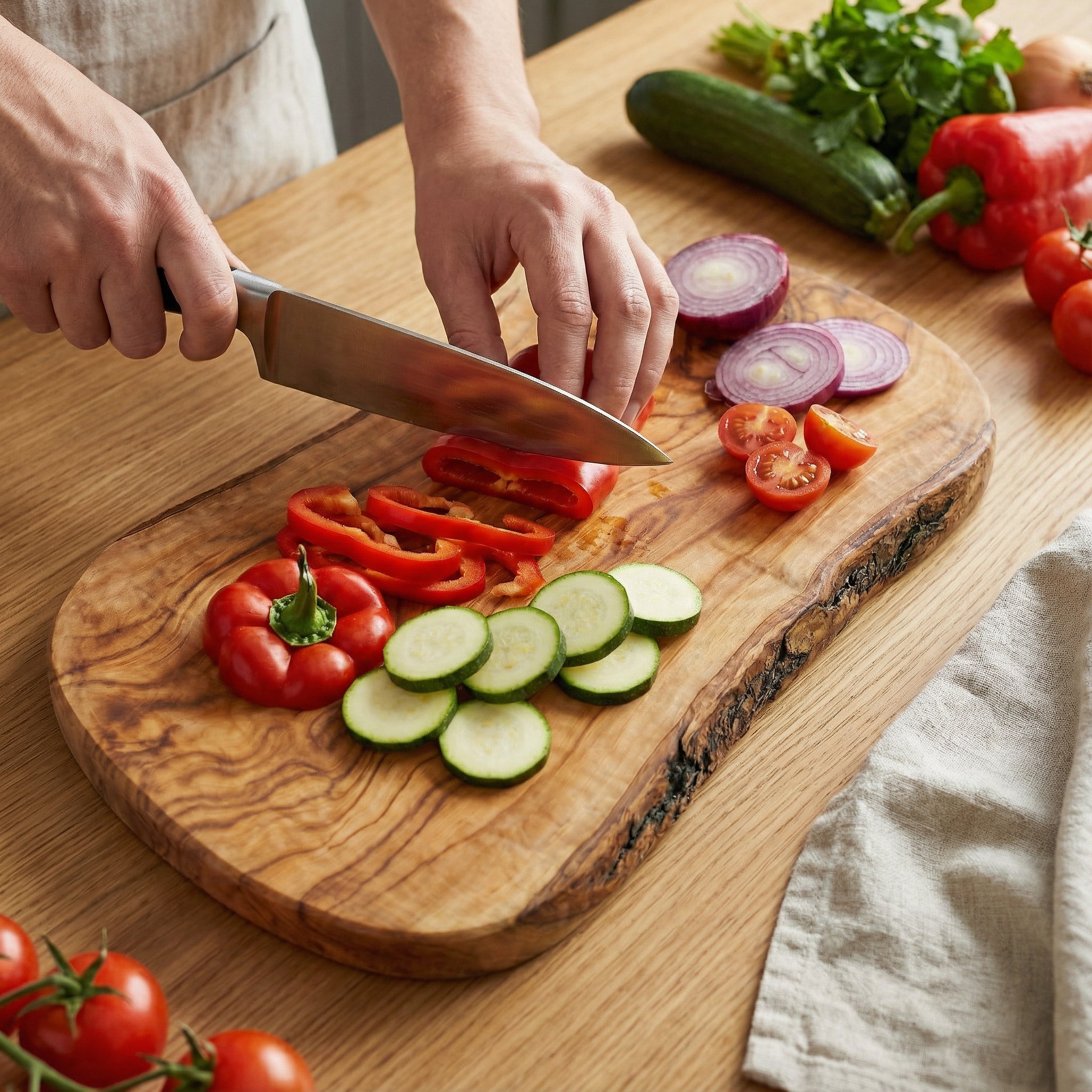 Ja. Olivenholz ist äußerst robust und für den täglichen Einsatz in der Küche bestens geeignet. Durch seine hohe Dichte ist es schnittfest, formstabil und nimmt kaum Feuchtigkeit auf. Auch bei regelmäßiger Nutzung behalten Olivenholzprodukte ihre Funktion und Optik über viele Jahre hinweg.
