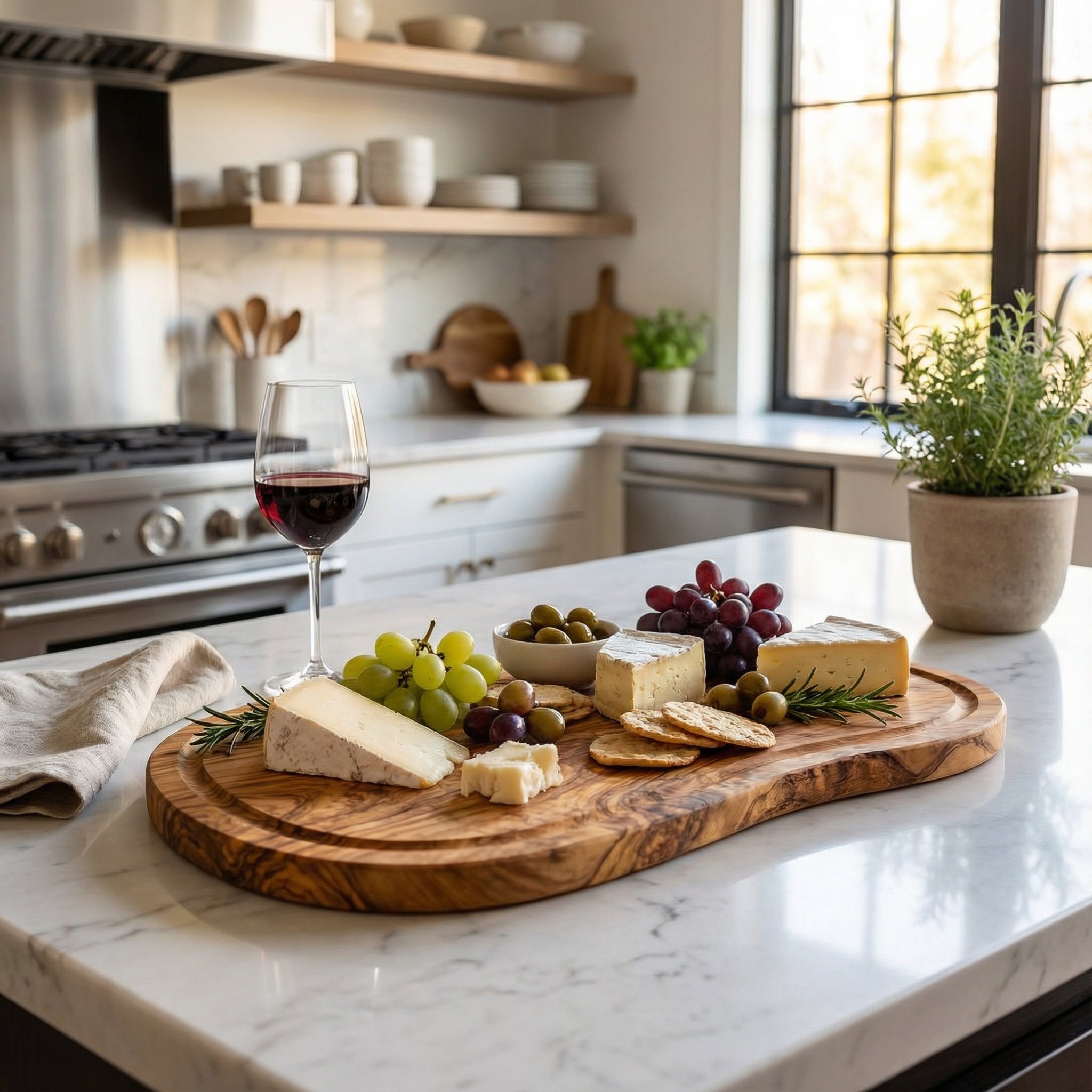 Olivenholz ist besonders hart, dicht und langlebig. Dadurch ist es äußerst widerstandsfähig gegen Schnitte, Feuchtigkeit und Abnutzung. Zusätzlich wirkt Olivenholz von Natur aus antibakteriell und ist lebensmittelecht. Die charakteristische Maserung macht jedes Produkt zu einem Unikat – funktional im Alltag und hochwertig in der Optik.